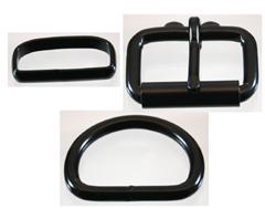 | Black 1 1/2" Hardware Shiny black 1 1/2" roller buckle, D ring and deluxe keeper. Available separately or in a combo pack. |
